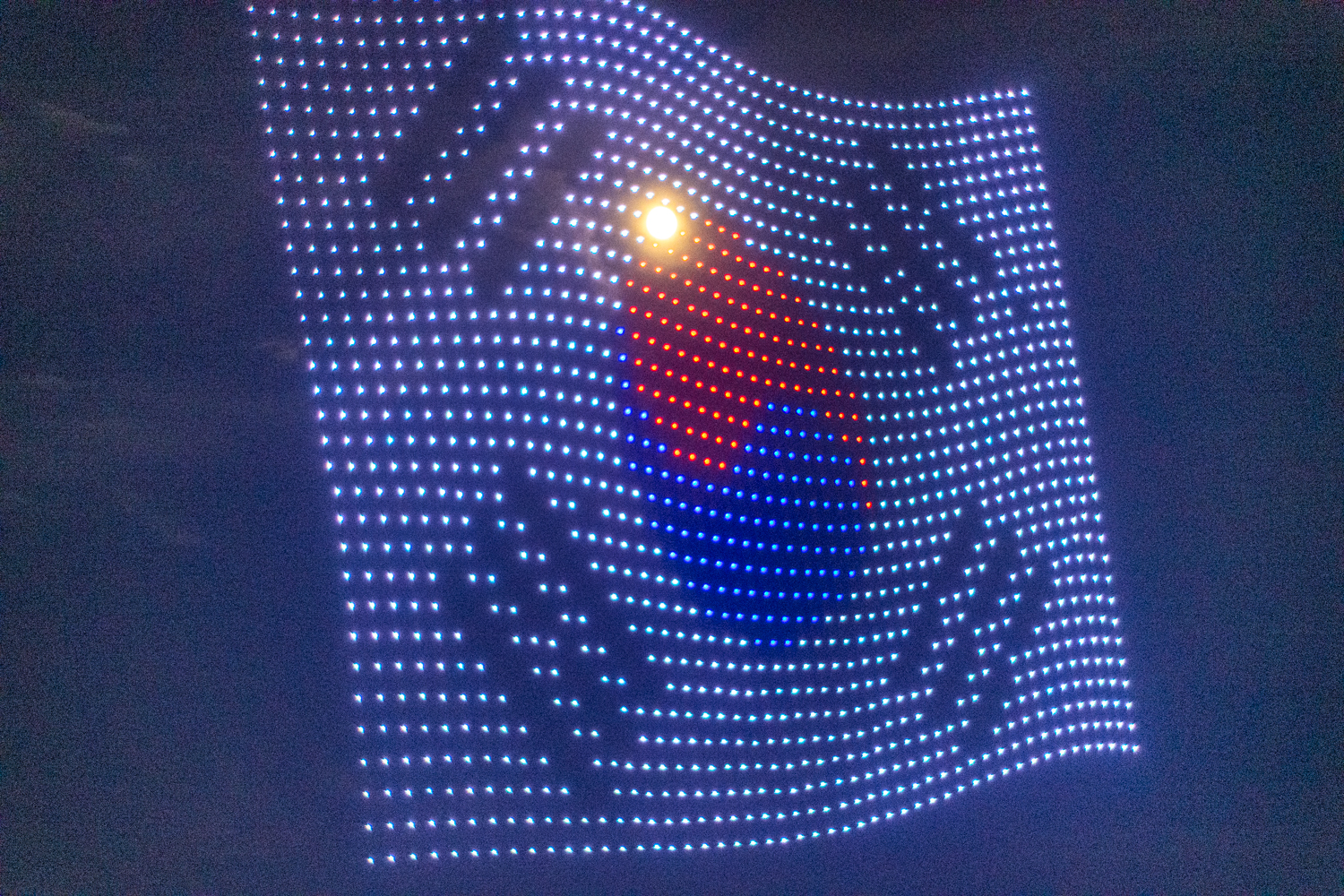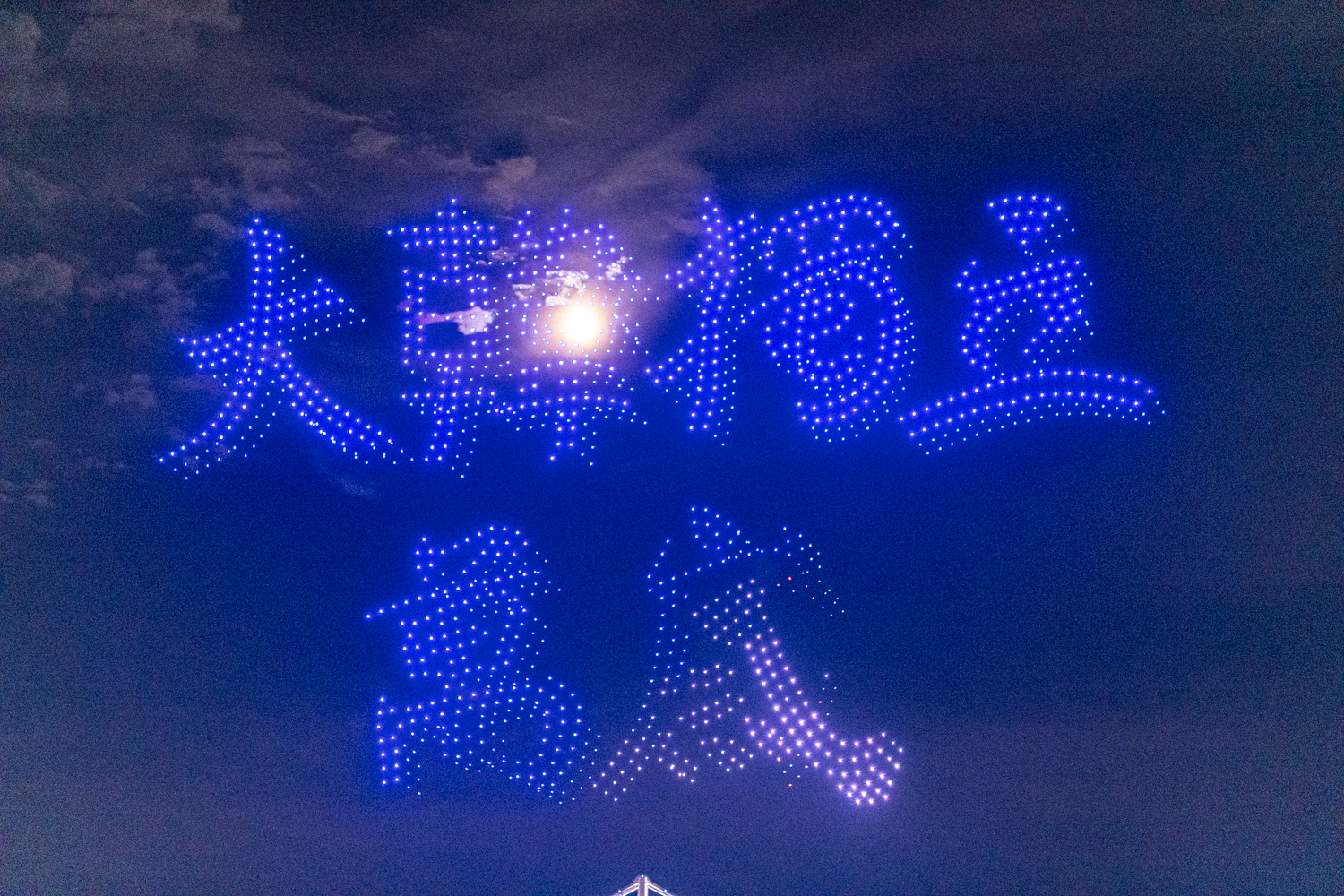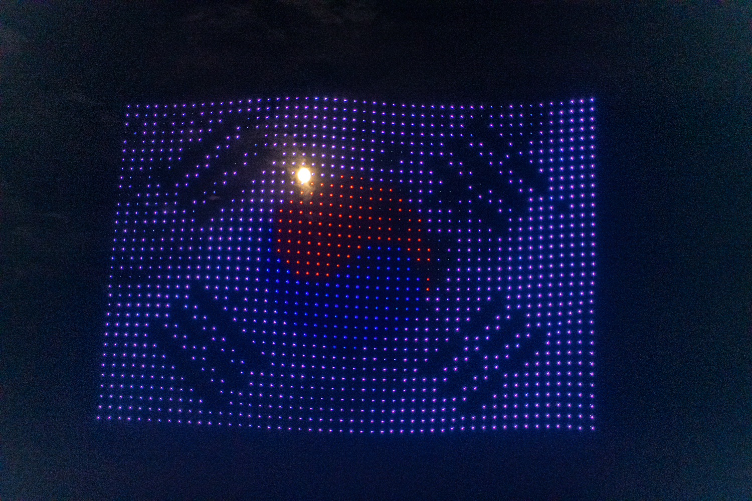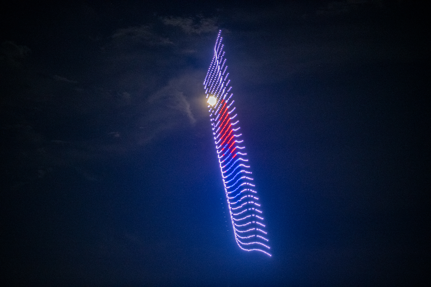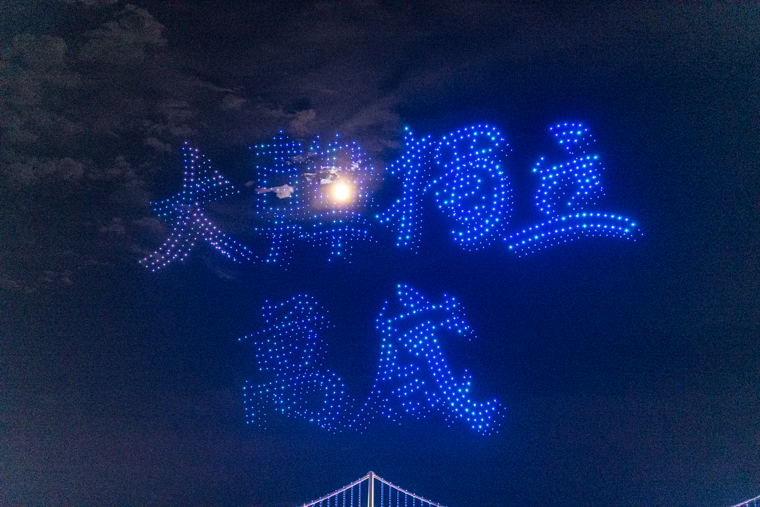 ▶드론 1500대를 이용 하였으며 광복80주년을 기념하여 80년의빛 미래를 밝히다 라는 주제로 시행 되었다.본래는 9일 토요일 20시와22시,2회에 걸쳐 시행 될 예정이었으나 9일 우천예보로 10일 일요일 동시간대에 시행된거다.달빛두 축하라두 해주는듯 온 달이다.